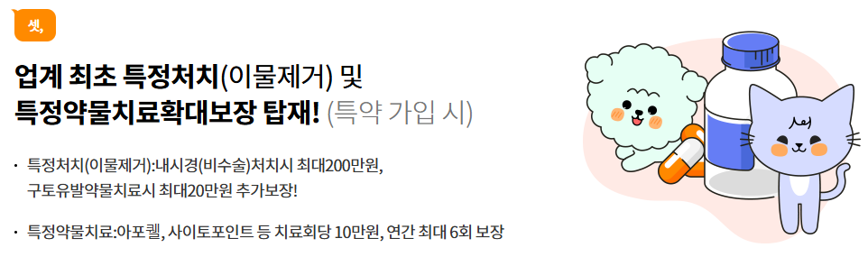 - 특약 옵션의 유연성: 치아 치료, 특정 처치(이물 제거 등), 약물 치료 등을 추가로 선택할 수 있습니다.