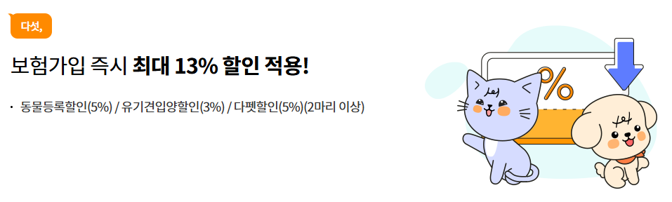 반려동물 등록이 완료된 경우, 보험료에서 최대 13% 할인 혜택을 받을 수 있어요.